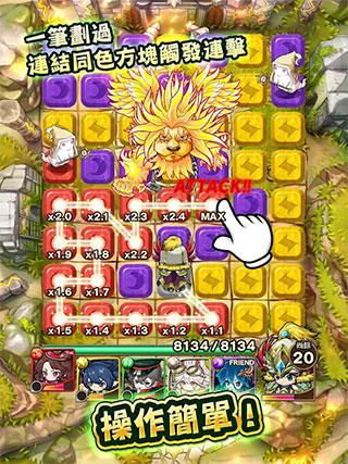 3、【动感魔物 伴你成长】 游戏内有至少200种魔物陪伴玩家一起进行冒险,每种魔物都有自己的独特造型和动 作,玩家可以培育、进化他们,组出属于自己的最强队伍。而魔物分别有火、森、水 、雷四种属性,消除该属性的方块后魔物就会出来帮忙战斗。