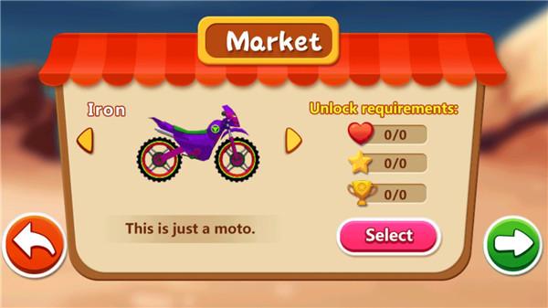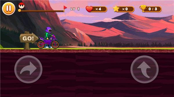 特技摩托赛是一款卡通风格打造的休闲竞速闯关类游戏。游戏采用精美细腻的卡通画风设计,拥有各种清新舒适的地图场景和人物车辆呈现,玩家将会以第三人称视角的方式横版控制摩托车稳定前进到达终点,
