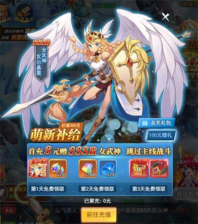 女武神-瓦尔基里听候您的差遣,神技6连击祝您前期迅速拉开差距建立优势。首充1笔送三天奖励,更有金色品质超级众神加入,快速霸服不是梦。