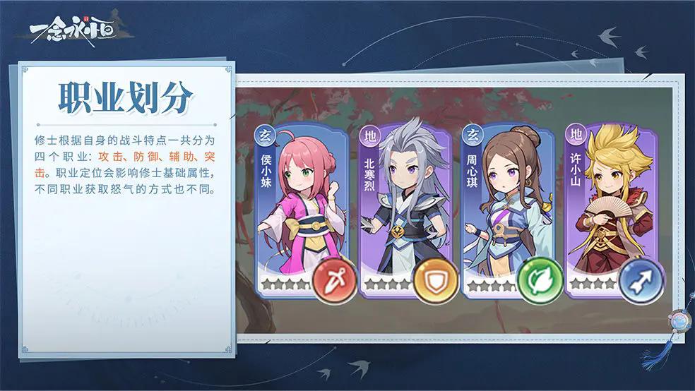 修士根据自身的战斗特点一共分为四个职业:攻击、防御、辅助、突击。根据自身拥有的修士以及练度,了解职业效果后再搭配最佳的护道者小队。