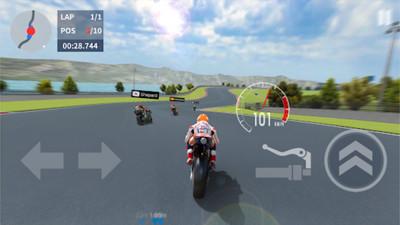 驾驶喜欢的摩托车挑选赛道与其他玩家来一场速度的比拼,注意速度和方向的把握,尤其是转弯的地方,一定要小心。