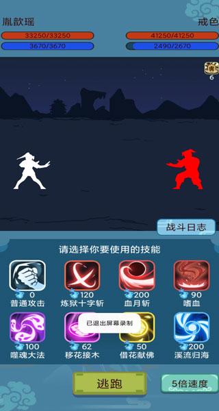 1、如少林掌门戒色,首先,用血刀斩给他挂一个流血效果。