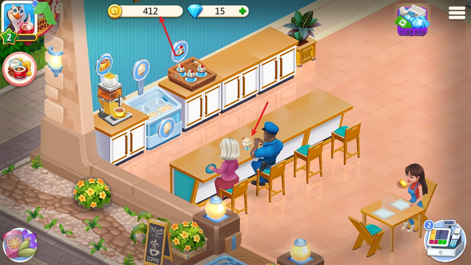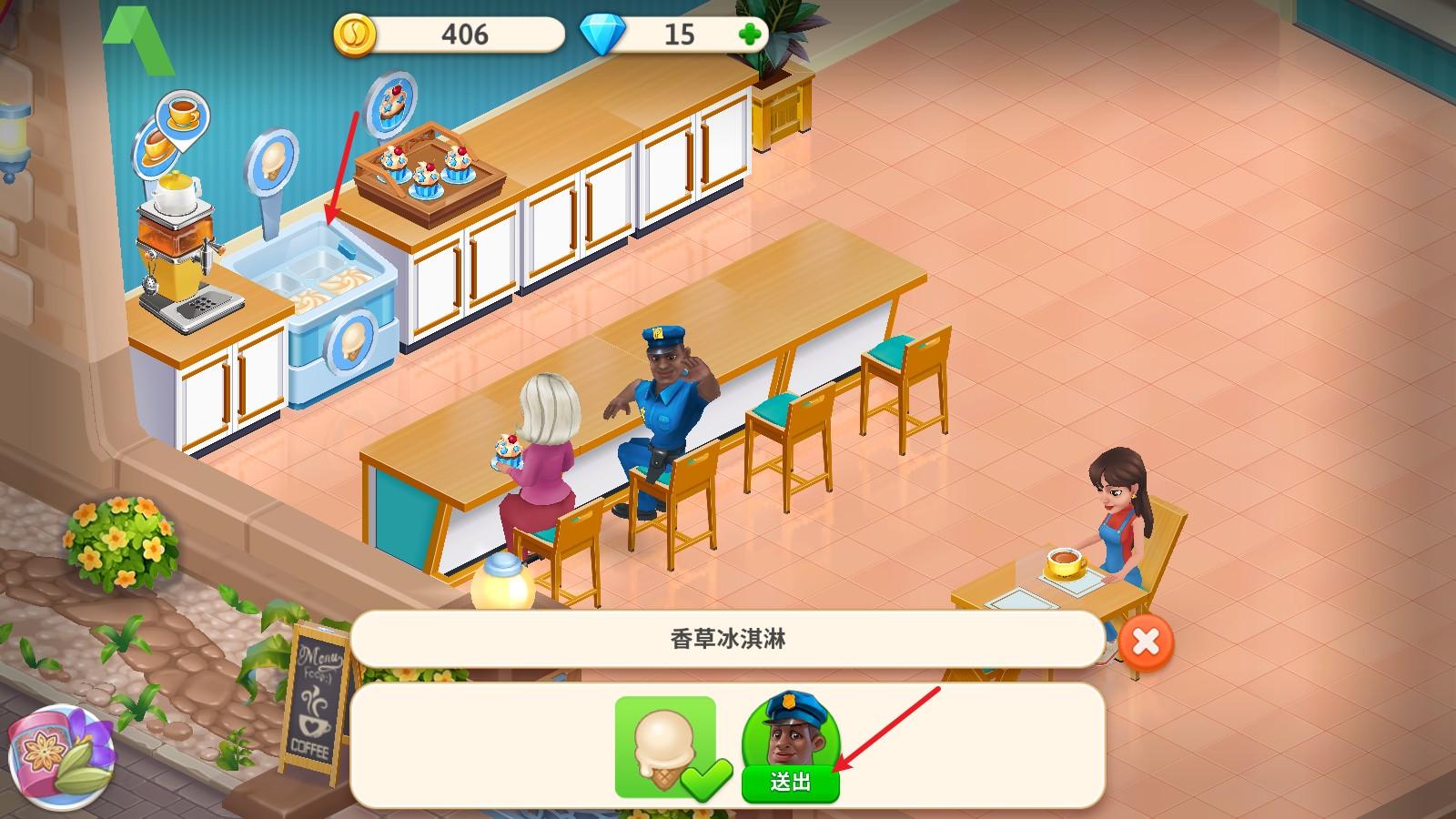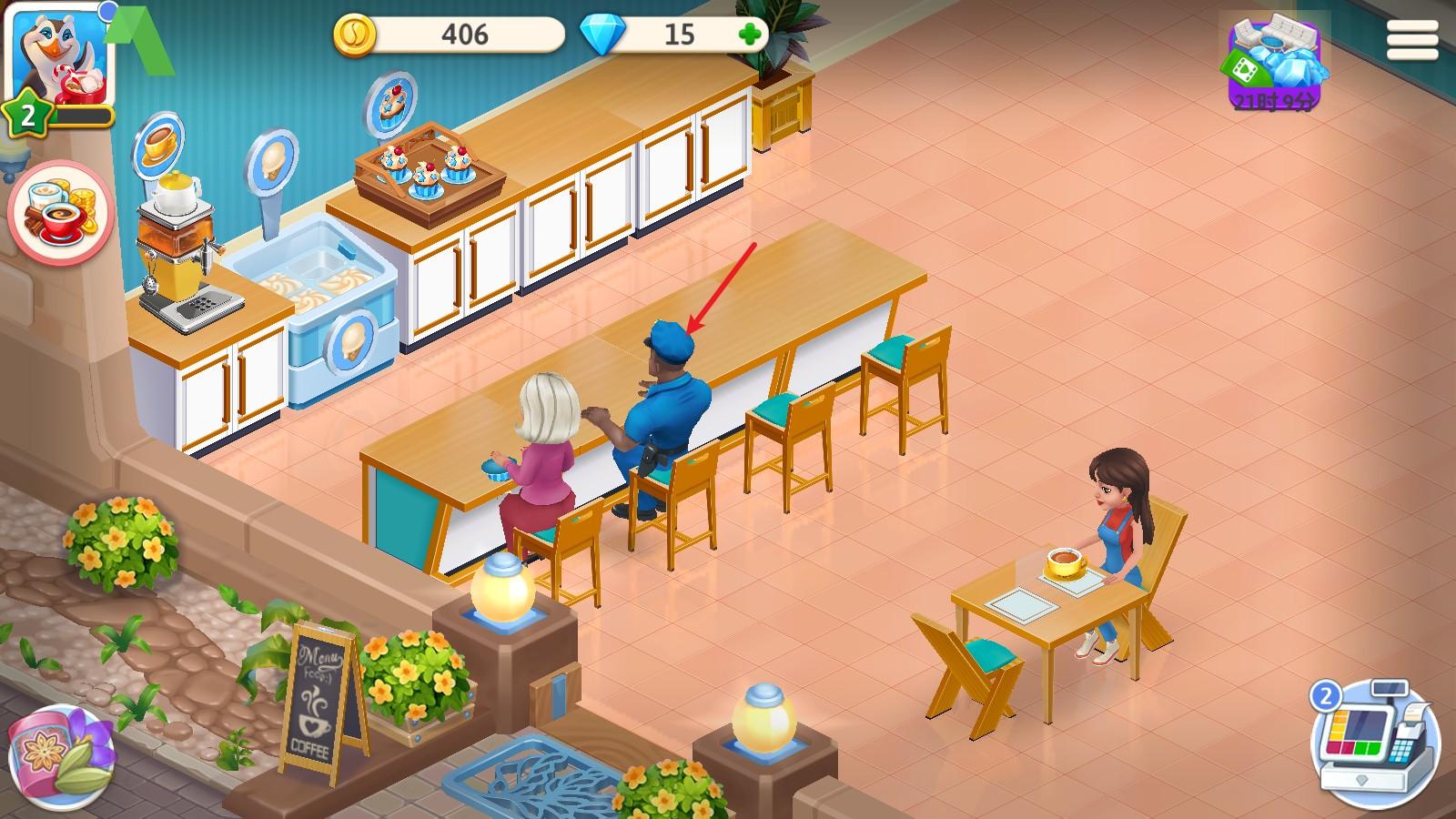 1、进入游戏后,你的咖啡馆就会有客人前来,点击即可为其点餐。