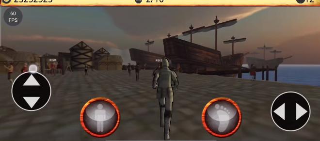 2、游戏开始后,人物是在一艘船上,正在和一个人对话,点击右下角的三角箭头即可。之后去和对面的头上有名字的人对话,一番对话后就可以进入大陆了