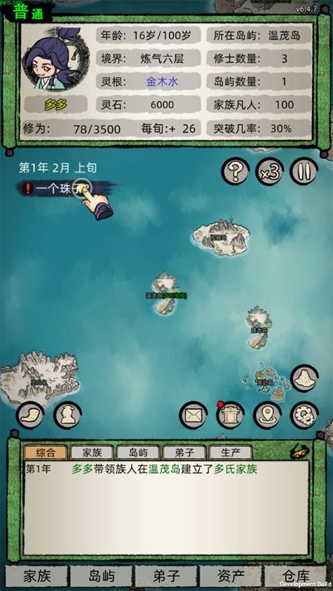 修仙家族模拟器本是一款以仙侠为主题的角色扮演游戏。玩家将扮演家族始祖的角色,进入一个全新的海域。从岛上出发,他们会带领你的家族发展壮大,采用凡人流的基本设定,种植,或者探索未知领域获取稀世珍宝,书写你自己的修仙故事。