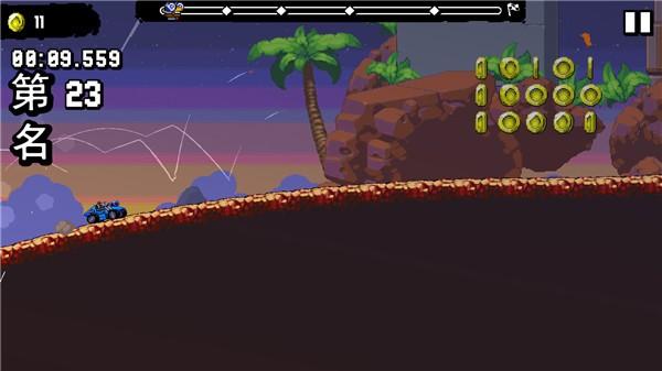 另外,本作是横版类竞速游戏,风格上采用了像素风,所以看起来特别的爽快。玩家可在游戏中自定义自己的赛车,改装出具有个性风格的爱车。除了常见的氮气加速外,还加入了武器系统,使用机枪和火箭炮等对其他选手造成致命的伤害,如果驾驶技术不好还会把自己的撞坏,车辆零件满天飞。