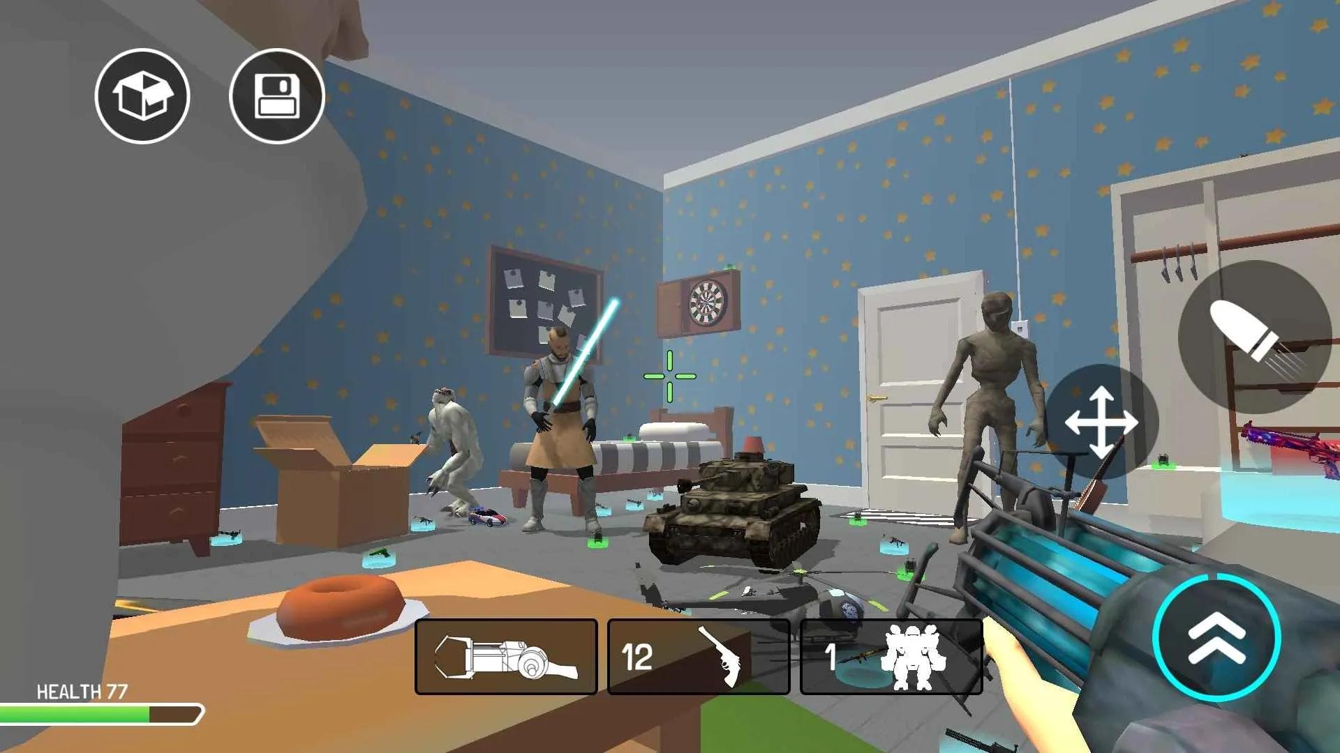 房间沙盒小机器人是一款实体沙盒生存冒险游戏。当危机随时到来时,玩家需要及时做好准备,使用各种武器射击,体验激烈的枪战,与机器人决一死战,使用金币增强实力,轻松KO所有敌人,以智取胜,智取微型机器人,保护城市安全。