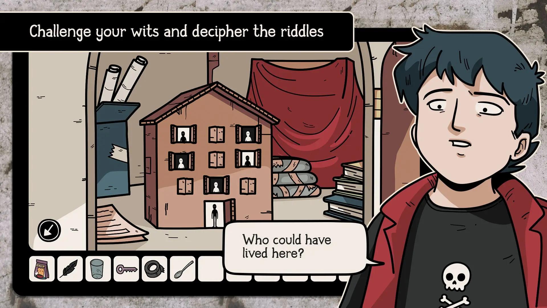 房间外的秘密是一款点击玩法的悬疑解谜游戏,镇上的一栋建筑已经废弃了六年。由于其黑暗的过去,没有人愿意居住。有仪式、巫术和谋杀的故事。难道它们只是谣言?达里安对进入和探索这座建筑感到非常好奇,但每次接近时他都会做噩梦。一天晚上,他收到了来自五楼的信号。灯光忽明忽暗,神秘的人影出现在窗户上。他感觉到有人需要帮助,决定进去调查。一个人进去是个好主意吗?