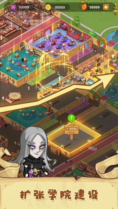 1、即使不启动游戏,你的学校也会自动运行,为你赚取离线收益,随时随地建设世界上最好的魔法学院!
