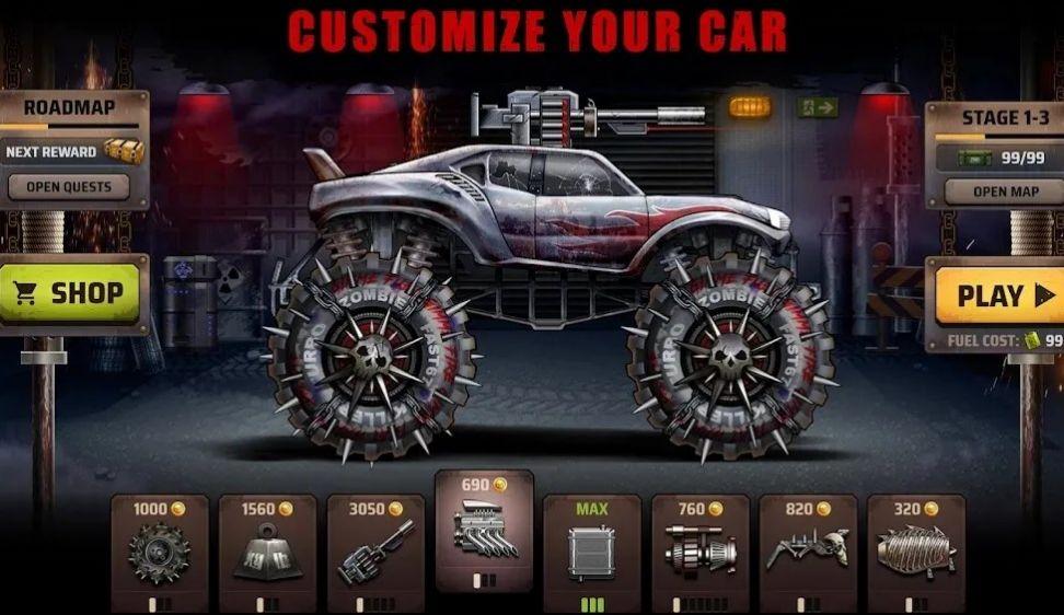赚取升级,根据速度,装甲和伤害选择僵尸汽车,如何更优雅地粉碎僵尸并粉碎对手。