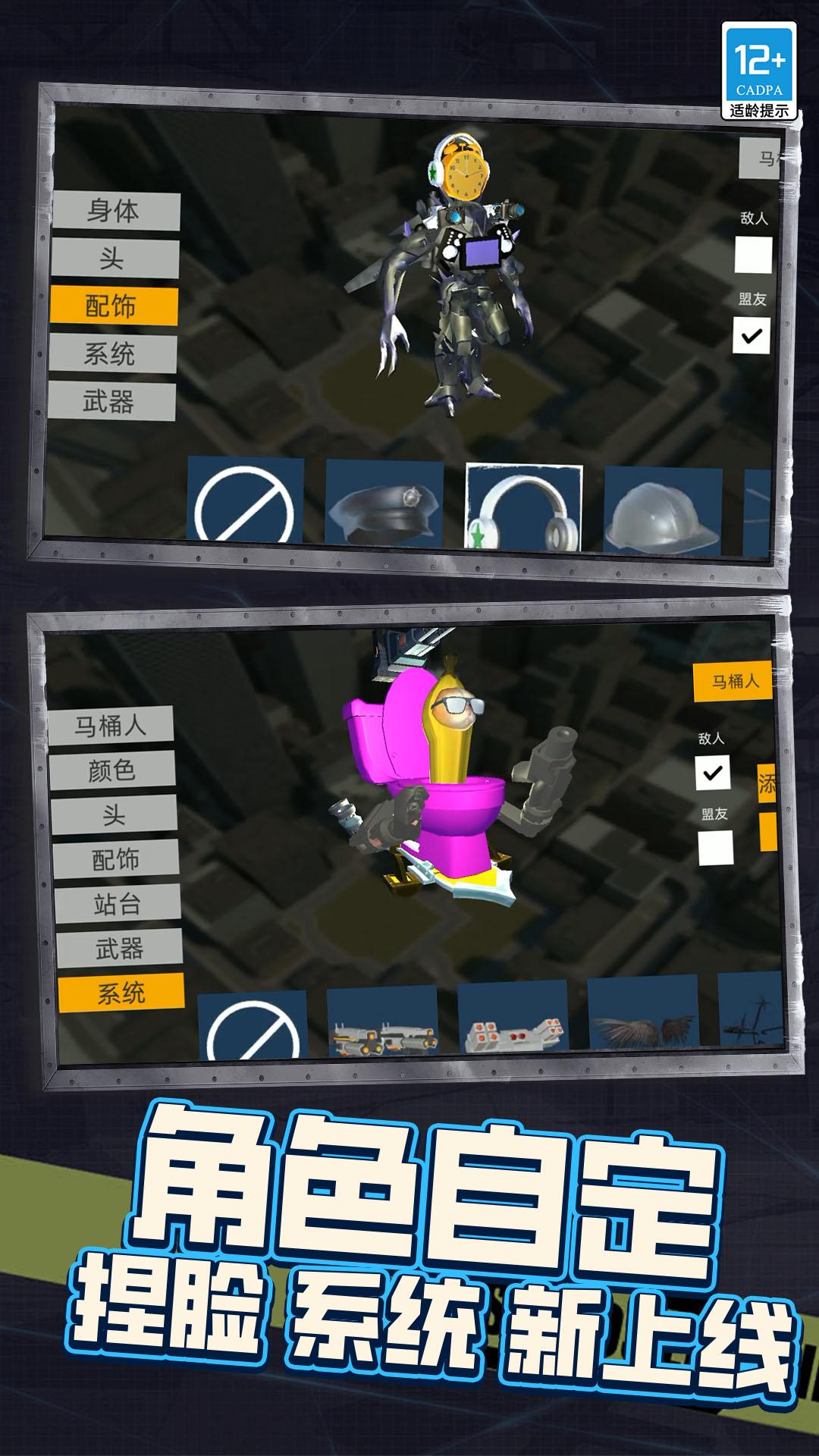 巨型马桶人模拟游戏是一款动作冒险游戏,这款火爆的3D实时射击沙盒游戏定能让你欲罢不能。它混合了紧张刺激的追逐战和无拘无束的建设乐趣,让你在畅享激爽枪战的同时,也能发挥天马行空的想象力,在游戏地图上亲手塑造属于你的奇幻世界。