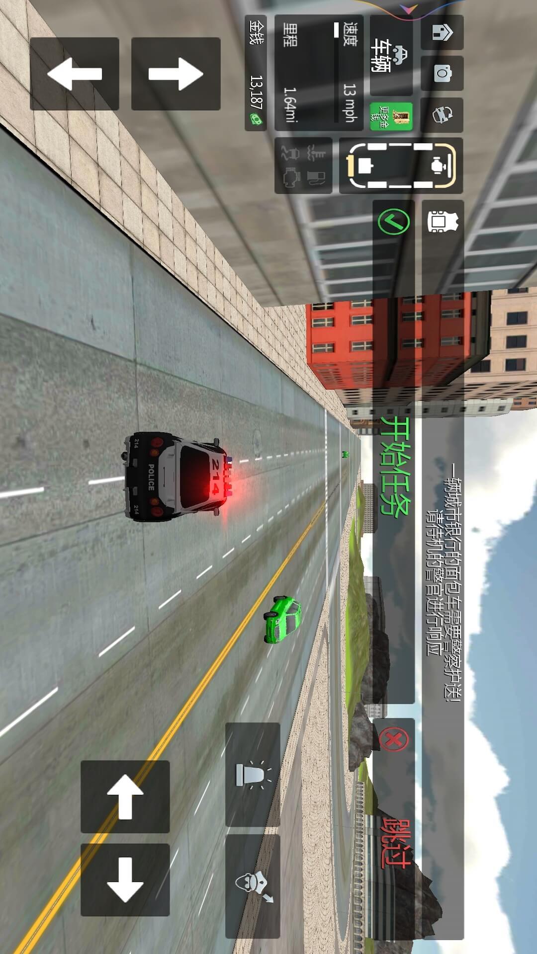 1、操作简单直观,借助虚拟按钮控制警车的加速、刹车和转向;