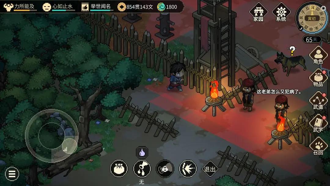5、充满烟火气息的像素武侠世界。游戏中有着自然流逝的时间,各色NPC都有自己独立的行为AI。