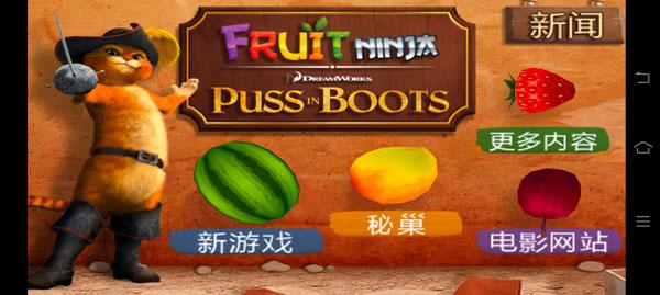 水果忍者穿靴子的猫最新版是经典游戏《水果忍者》系列中一款与梦工厂合作推出的联名版的切水果手游,这款游戏根据同名电影改编而来的。这款全新的《水果忍者》不仅增加了新的角色,还增加了新的模式,还有新的背景和武器,使得游戏更加好玩了起来,特别是其中的“Bandito”模式,这个模式要求玩家在连续的困难关卡下生存下来,是非常难的,有兴趣的朋友可以来下载挑战一下。