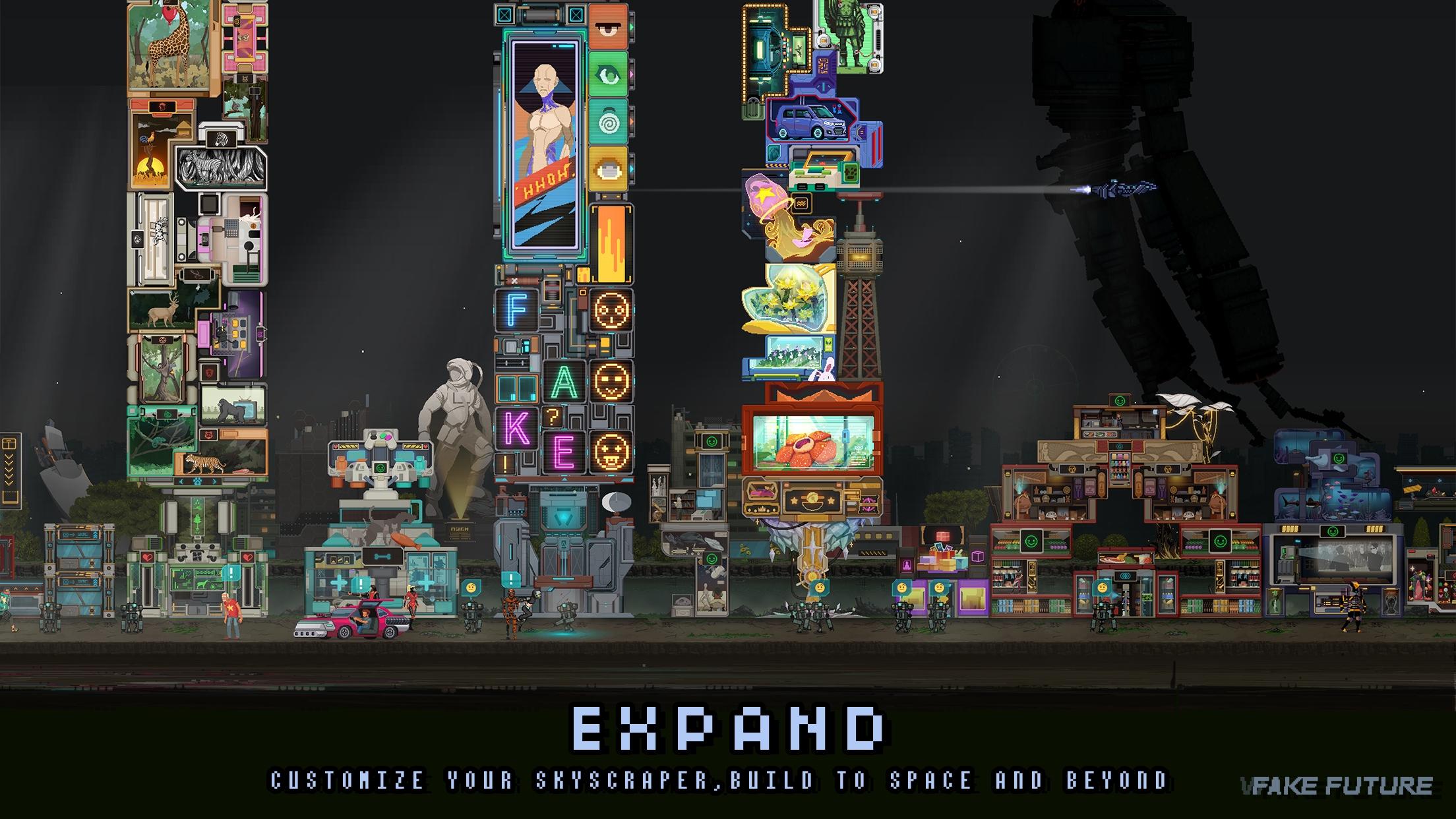 《假未来》是一款结合复古科幻风格的模拟经营手游,独特的“俄罗斯方块”式建筑搭建,在游戏中,你将与赛博人一起重返家园,重建属于你的“未来”城市。