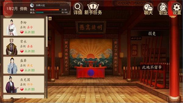 大老爷是一款角角色扮演游戏。在游戏中,玩家扮演一个古代的穷书生,通过完成各种任务、冒险和挑战来发展自己,游戏自由度很高。玩家可以通过不同的选择一步步进步,最终成为一代有权有势的官员,或是仕途有成,或是一生碌碌无为。由玩家自己选择。
