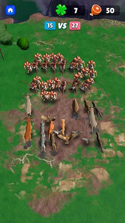 1、参与战术合并、激烈的狩猎和战略战斗,引导你的动物军队保护自己的领地免受人类对手的侵犯。