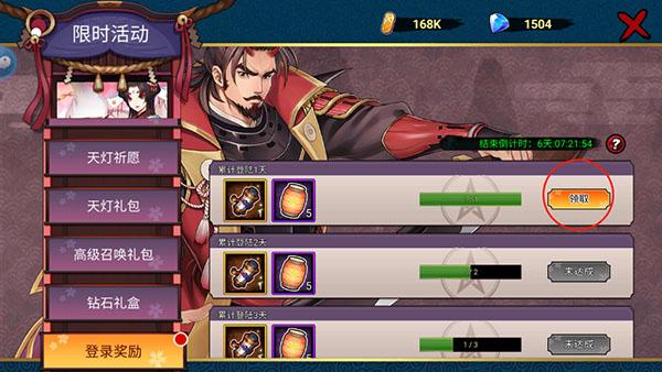 【七日庆典】每日福利处可以领取大量强力4星英雄碎片,福利拿到手软。第二天登录即送5星英雄「封魔小太郎」,第三天登录即送5星英雄「真田幸村」。