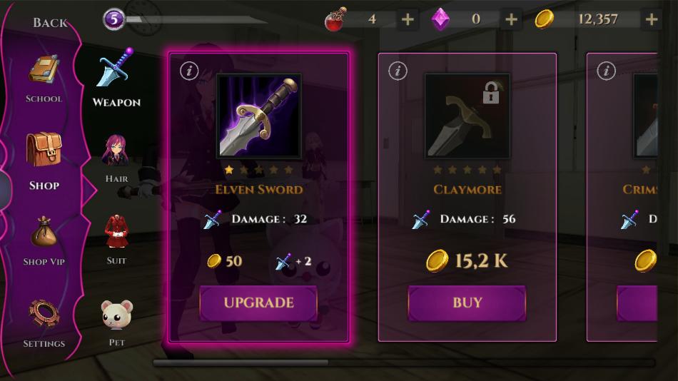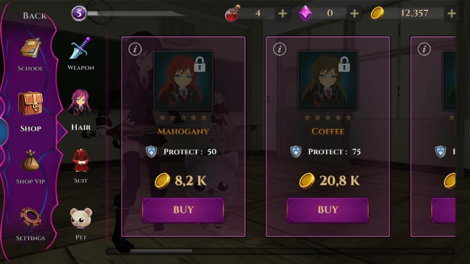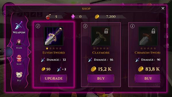 5、游戏中还提供了商店系统,当玩家金币足够时可以在商店中购买新的武器、服装、发型和宠物