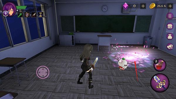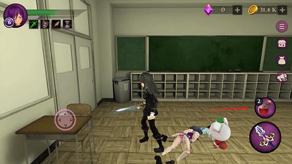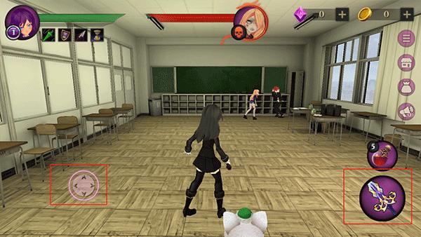 2、在动漫高中僵尸模拟器游戏中你将通过左边遥感操控角色的移动,右边为攻击按键
