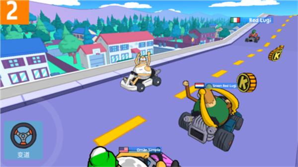 4、游戏道具:在赛道中分布着各式各样的游戏道具,如护盾、加速器等,玩家使用它们来获得优势。