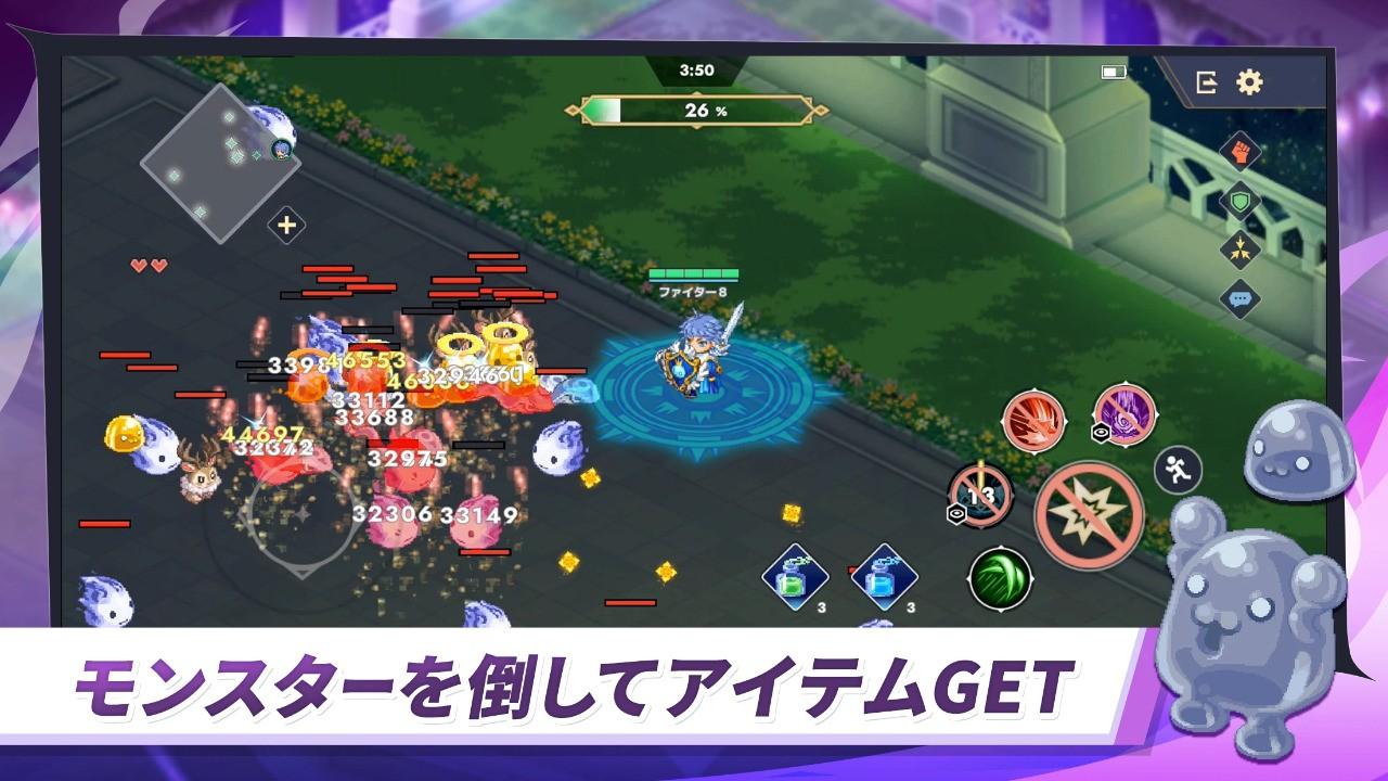 2、怪兽战斗是使用技能与随机出现的道具扫蕩大量怪兽的爽快战斗。玩家可从怪兽的掉落物中,获得装备与素材等各式稀有道具。