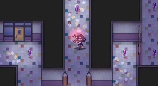 4、一直向右走到尽头乘坐电梯上二楼,收集所有散落的紫水晶,但是要注意会有猴子怪物追赶你,抓住时机寻找藏身之处,躲避它们的追杀。