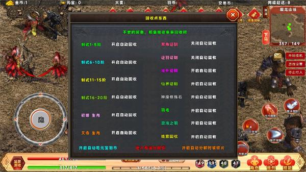 5、多余的装备可以通过回收系统换取金币和元宝。
