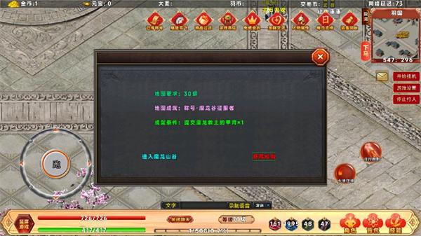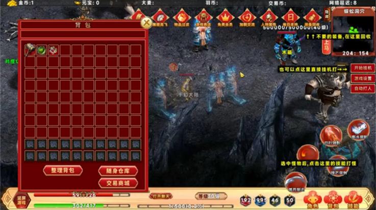 2、右下角的四个魔瓶分别用于回血、回蓝、随机传送和返回城镇。