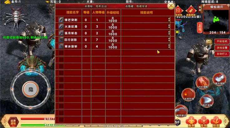 3、玩家可以在右下角设置技能,选择适合挂机的装备技能。