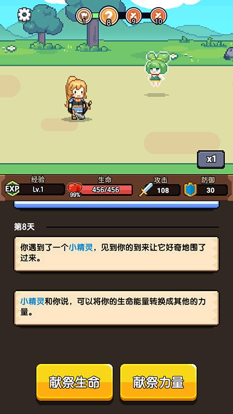1、无双兵器游戏的玩法还是比较简单的,玩家只需要点击下一天开始推进冒险。