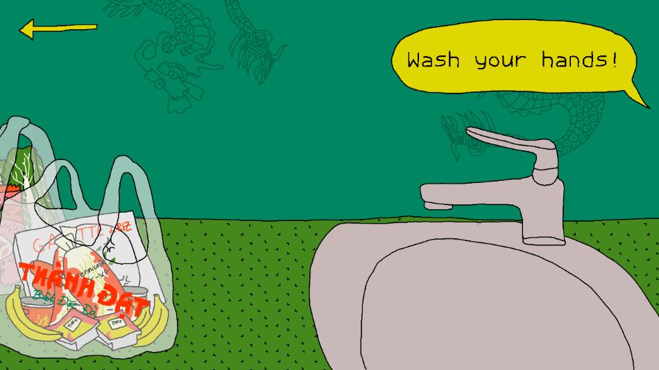2、将你的手洗干净,通过点击小虫并放入水下冲洗完成洗菜。