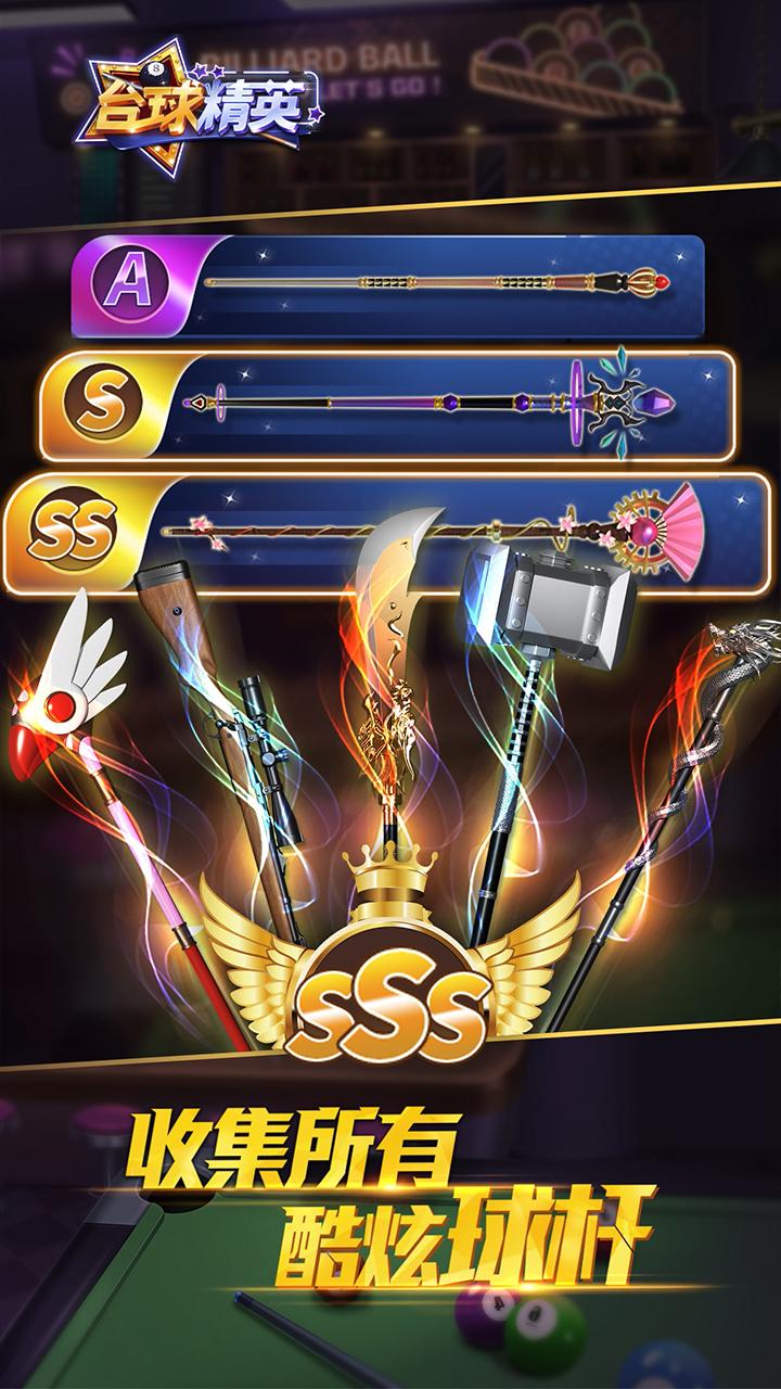 巧夺天工,杆杆酷炫。游戏中配置多种属性、不同品质外形的球杆和球桌,分分钟体现你的个性!