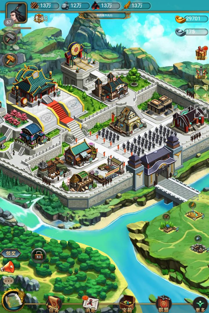 1、通过:“领奖”、“任务->签到”来获得多个资源箱,打开后可获得初始资源,每天也能领取一次日薪俸。