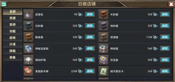 每座分城每天最多攻打10次宝物山寨,白银同黄金一样所有城市通用,可在白银店铺购买道具。