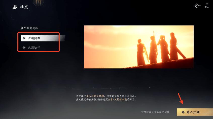 选择社交倾向,点击“踏入江湖”;