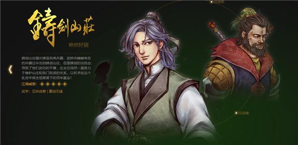 铸剑山庄擅长铸造各类兵器,武林中赫赫有名的兵器过半出自铸剑山庄,但是铸剑的出色也导致了他们武功的平庸,庄主任浩然一直致力于维护山庄和各门各派的关系,以祈求在这个乱世中保全祖辈留下的百年基业。