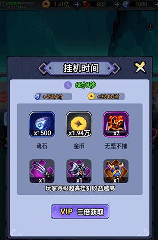 等级每10级提升一次魂石的收益,这里可以看到,我的收益是6小时加三倍vip获取是4500魂石。如果按时收取的话