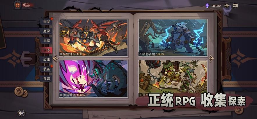 游戏拥有图鉴,日志,魔灵,怪物,装备,成就等海量的收集元素;非快餐类游戏,无过重日常任务负担,可肝可闲,体验内容,轻松养成。