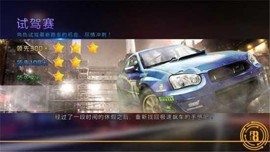 生涯模式比较有趣,本身带有剧情,玩家选择自己喜欢的跑车,在游戏的过程中随着剧情的发展赛车