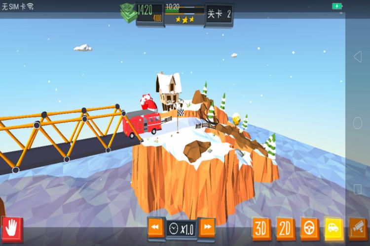 全新的建造闯关玩法,玩家可以选择桥梁的建造位置以及不同的材料进行建设,怎么样的天马行空的建造全都可以,在这里可以尽情发挥你的想象能力