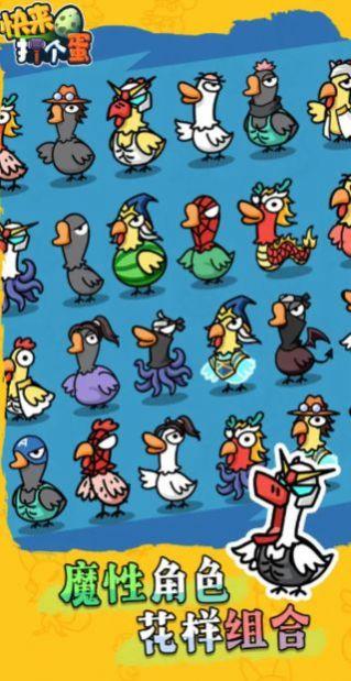 快来打个蛋游戏是一款非常有趣的冒险打怪游戏,在探索过程中,你可以收集资源以生产食物,制造装备或提升公鸡们的能力,打败迷藏在各处的怪物,将他们的蛋取得,用来培育各种新的动物。喜欢的朋友欢迎前来下载体验。