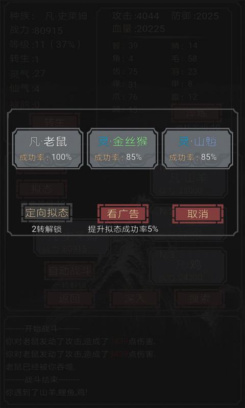 4、通过吞咽技能,你可以变身成各种造型,进行非常实用的挂机玩法放松自己。