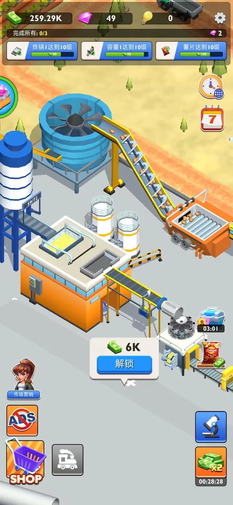 1、现金来源:在游戏中,我们的主要收入来源来自于销售不同类型的薯片,我们可以使用现金来升级我们的建筑,显着提高我们工厂的效率。 这样,我们工厂的收入就能一步步增加,从而带动工厂的成长!