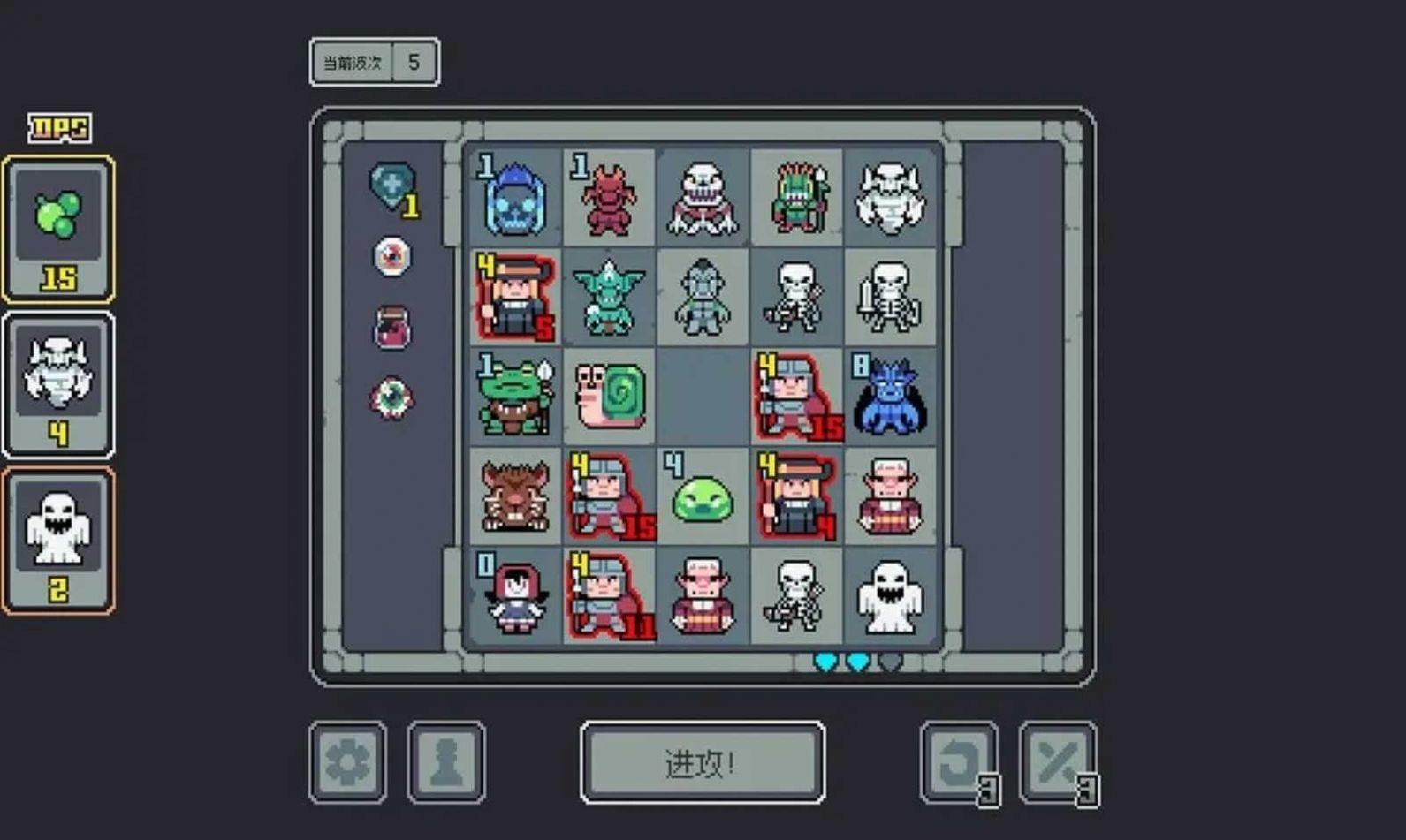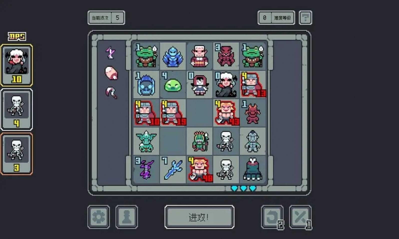 点击战斗按钮后,魔王的随从们将自动进入棋盘杀敌。随后,援军赶到,玩家需要做出选择,实现构筑,达成联动,以期加强魔王的队伍。