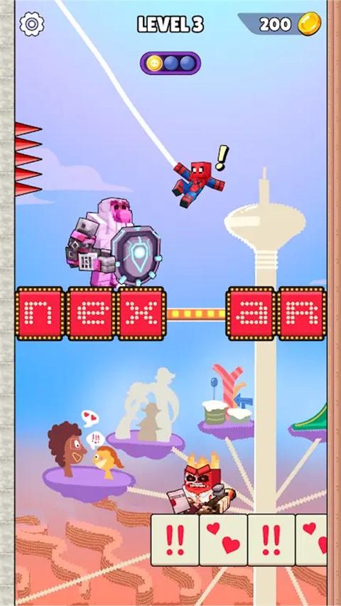 1、拥有多种独特的技能,发射蛛网,攻击并破坏其中的物品,用不同的方式解开谜题。