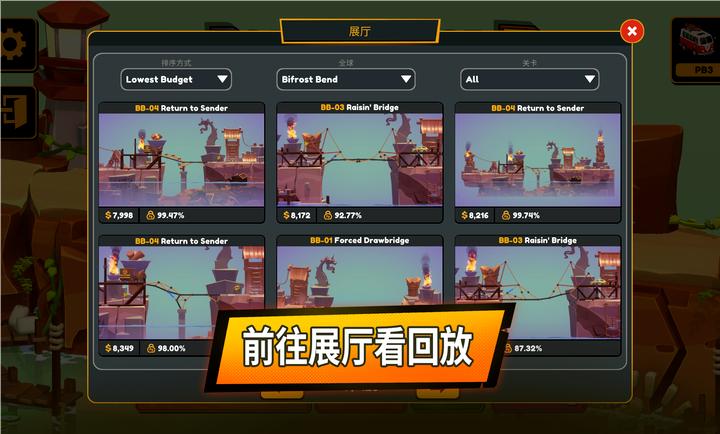 5、独特的创意工坊玩法,玩家还可以探索社区设计的无限内容和挑战,欣赏其他玩家设计的桥梁作品,展示自己的创作。