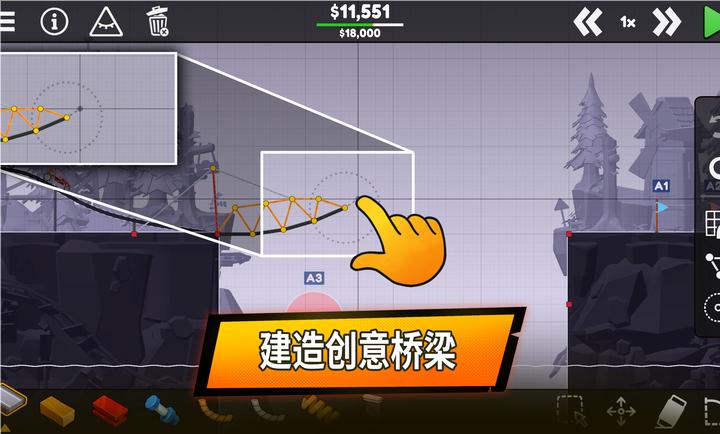 3、在沙盒模式中释放您的工程创造力并将您的桥梁建造技能发挥到极限。