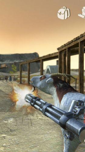 2、你会发现所有的山羊都背着机关枪,这就表示如果你攻击它们,它们也会攻击你。