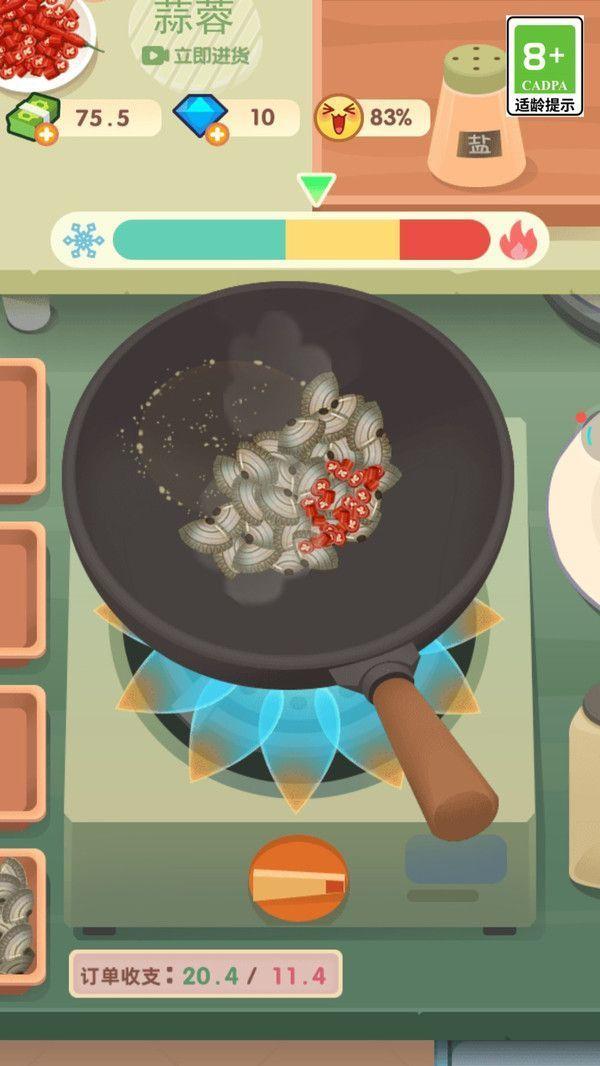 2、您需要通过出售食品带来获得资金,获得的资金可以用来兑换新的厨具